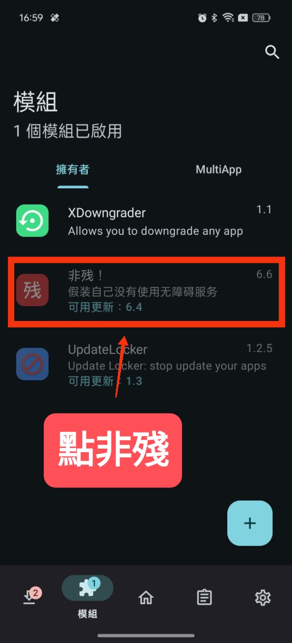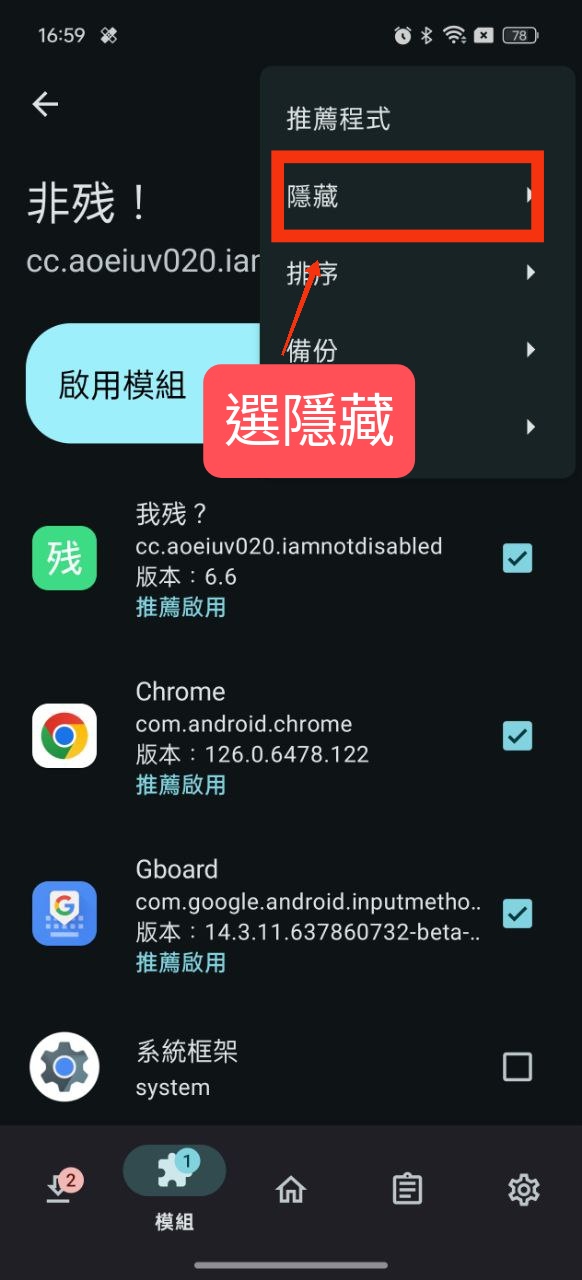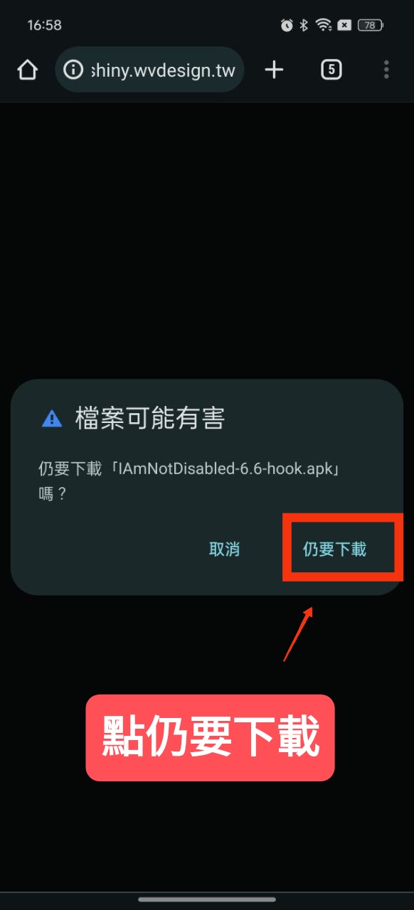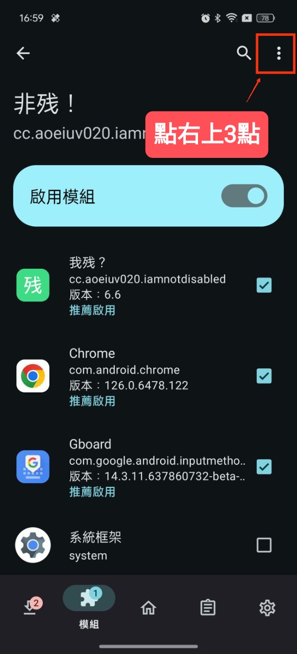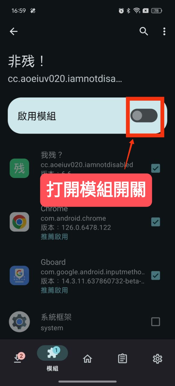 模組下載連結:https://github.com/Xposed-Modules-Repo/cc.aoeiuv020.iamnotdisabled.hook/releases/download/6.6/IAmNotDisabled-6.6-hook.apk